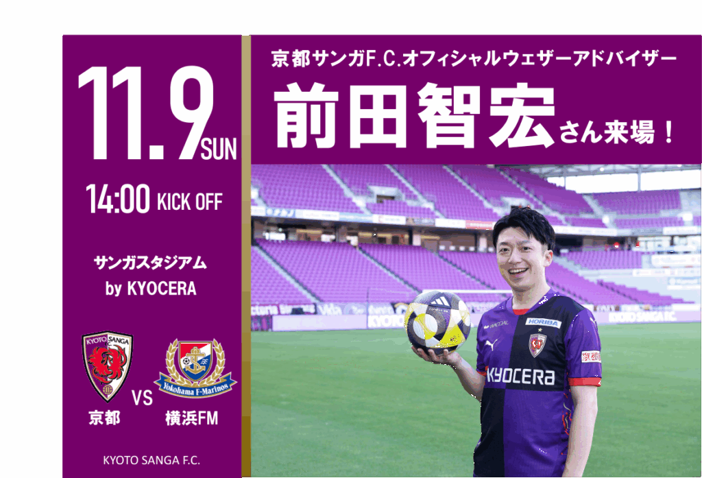 11月9日(日)サンガスタジアムにて行われる横浜FM戦にて