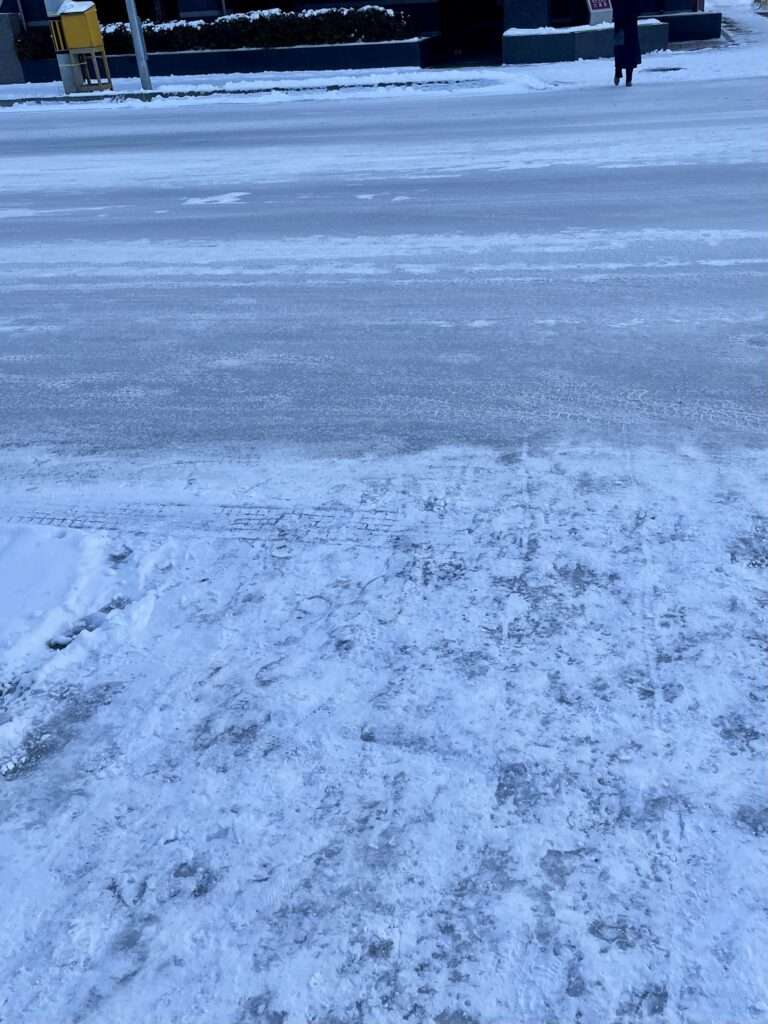雪や雨が降り、気温が0度くらいになると、この恐ろしいツルツル路面になります。