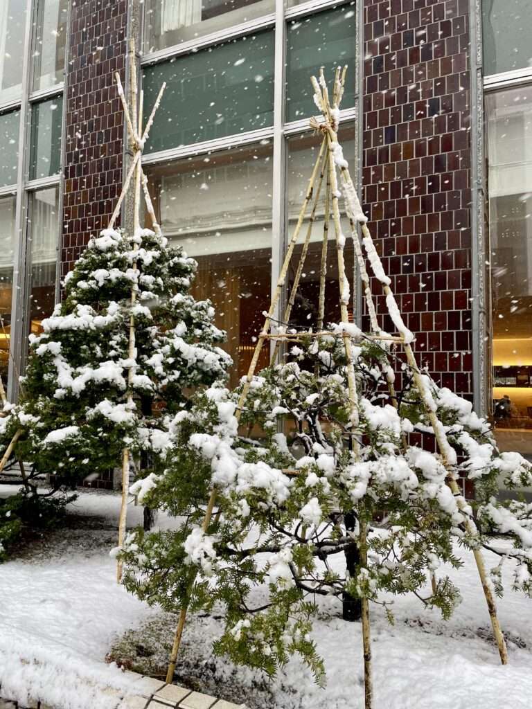 雪の重みや強風から木を守るために、縄や竹、わらなどを使って木を囲う作業のことです。